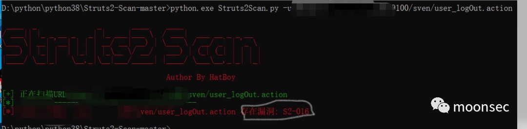 根据avws提供的路径,接下来我们便去做了个小小的漏洞验证,首先去GitHub上了Struts2的小工具包,是由python3编写,下载解压完,打开我们的dos终端,用python.exeStruts2Scan.py -u url