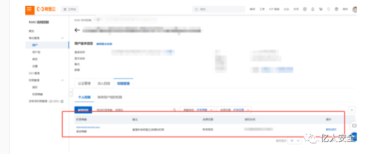 访问控制中看到当前权限为:AdministratorAccess 意味着我们已经拿到了该租户的管理员权限