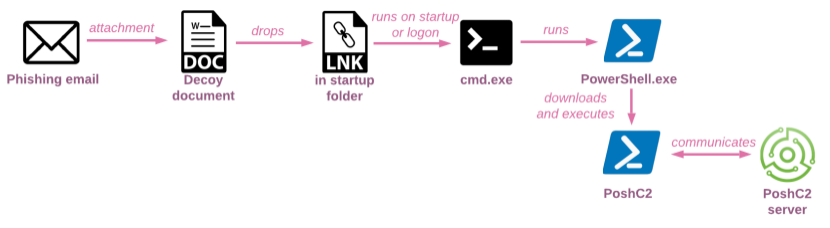 近日,Checkpoint研究人员披露名为DangerousSavanna的恶意活动。该活动主要针对多个非洲国家的金融机构。攻击者通过鱼叉式网络钓鱼电子邮件,发送带有宏脚本的文档或带有远程攻击模板的文档完成初始接入,然后进一步开展攻击活动。下图是攻击者使用有宏脚本文档的感染链。