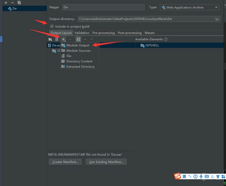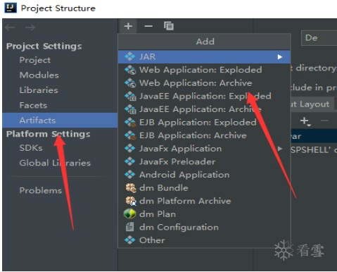 选择Artifacts,然后再选择webApplication: Archive