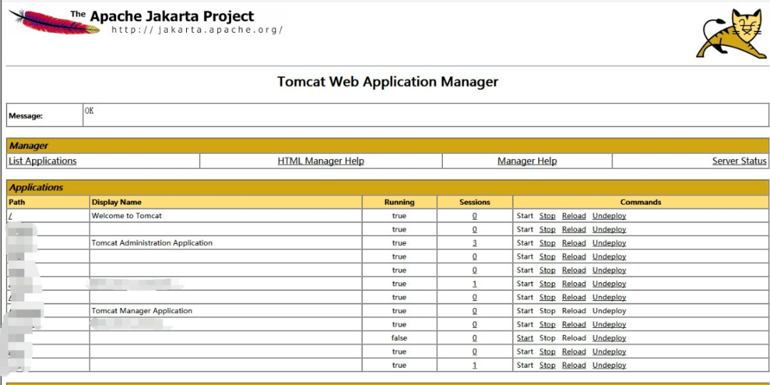 tomcat默认有个manager的管理后台app,密码存放在conf/tomcat-users.xml里面。如果tomcat是外网开放的,那么这个manager服务也是开放的,http://主机:端口/manager/html 可以看看是不是通的