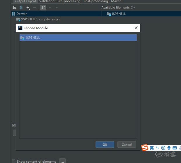 打勾include in project build然后点击+号选择module Output