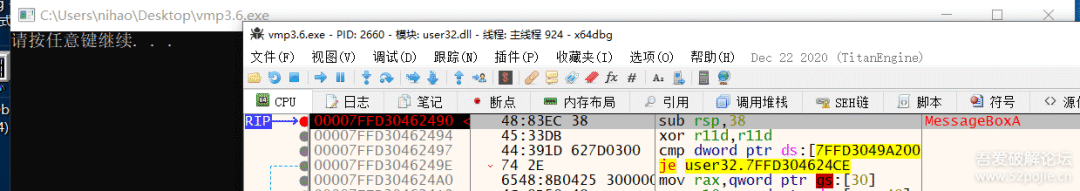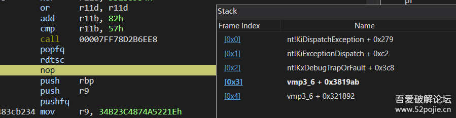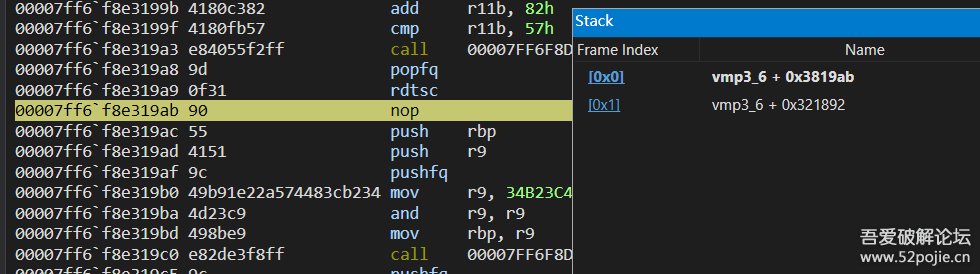 Image: vmp3.6.exe1: kd> .process /p ffff9d0e5aad6080 //切换上下文,方便修改PEB