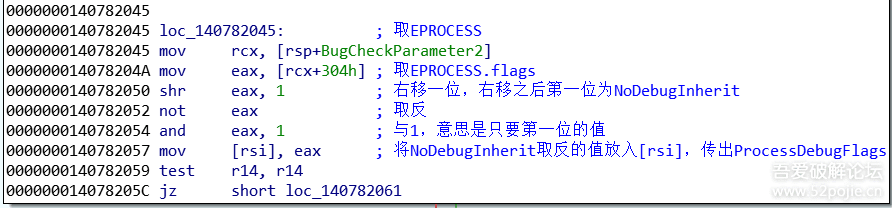 +0x304 NoDebugInherit : Pos 1, 1 Bit //未调试时置0,调试时置1