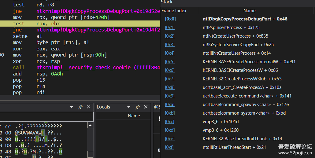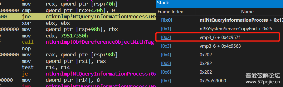 复制代码 隐藏代码 1: kd> !process 0 0 vmp3.6.exe //获取 EPROCESS