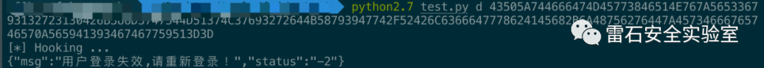 session = frida.get_usb_device().attach("com.xxxx.xxxx")script = frida_rpc(session)param = str(sys.argv[2])ret = script.exports.rpcfunc(param,"CCCk+H%b6.MMMMkoKKK")print(ret)