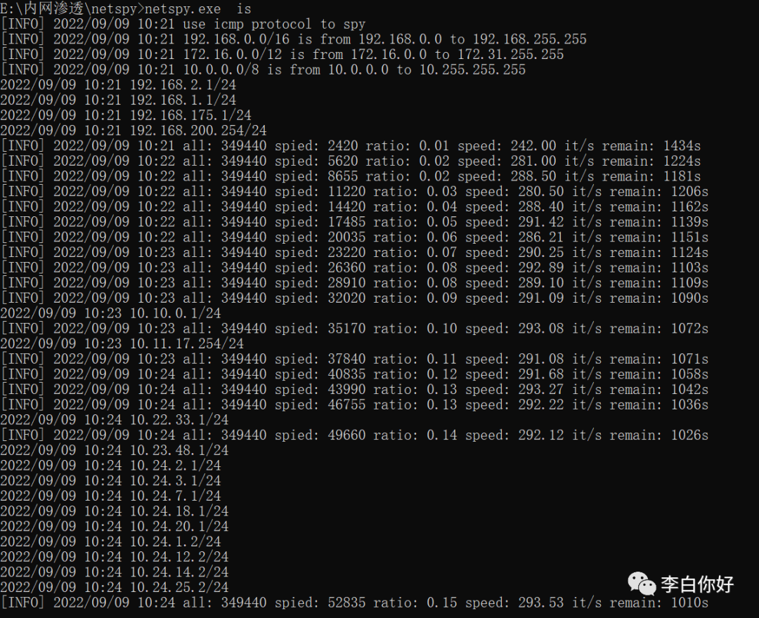 netspy -x is注: 急速模式协程数量为cpu核数*40,只探测段内网关。