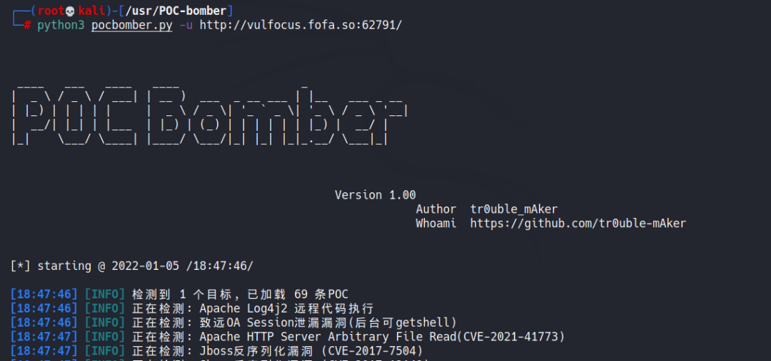 POC bomber是一款检测工具,旨在利用大量的POC/EXP快速获取目标服务器权限。