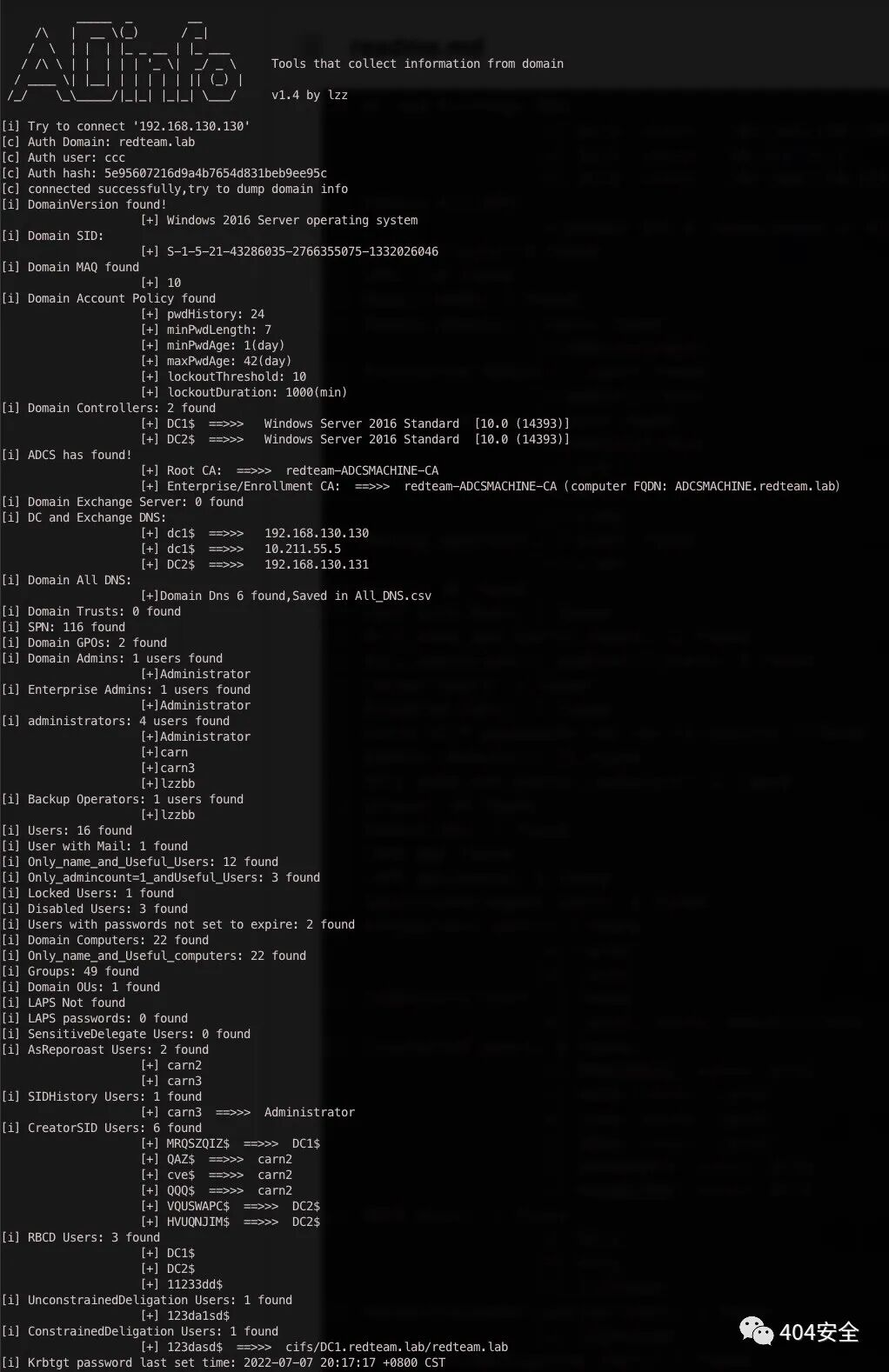./Adinfo -d redteam.lab --dc 192.168.1.1 -u ccc -p Qq123456..