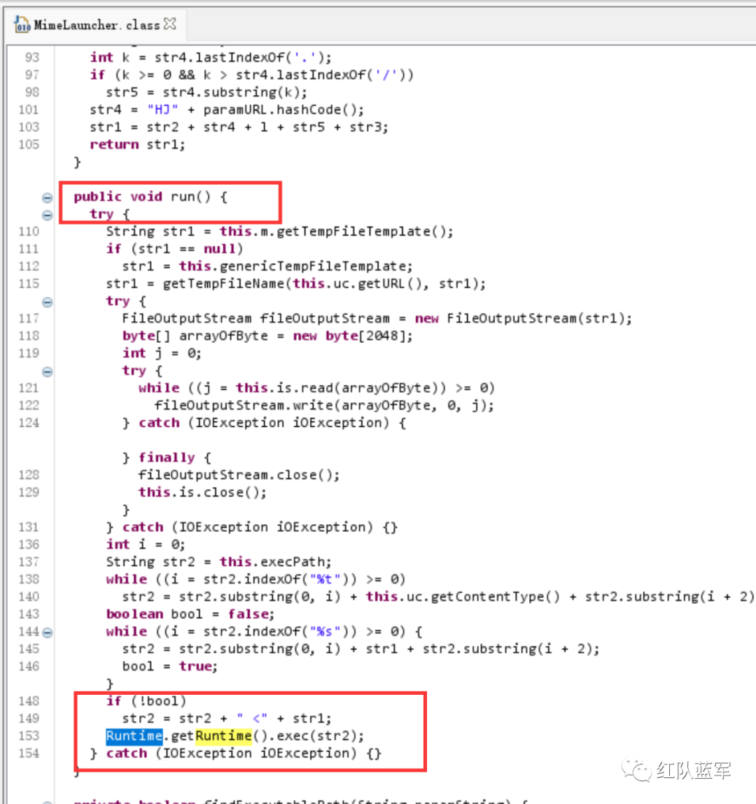 在sun.net.www.MimeLauncher中存在一个run方法,而该run方法存在命令执行漏洞