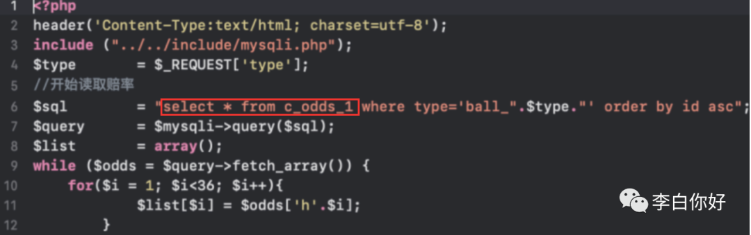 找到文件Get_Odds_1.php, 发现其中的$type参数直接拼接进SQL语句中,存在注入。