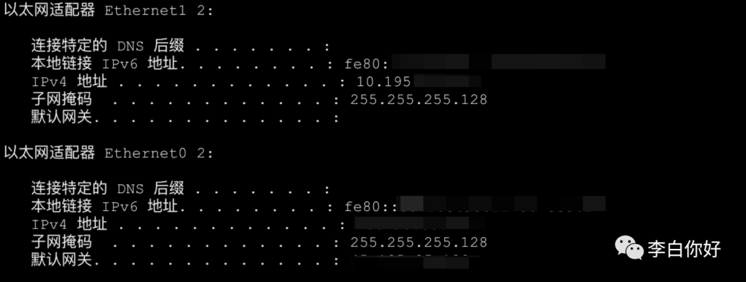 ipconfig /all 查看网络状态