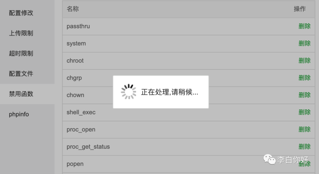 1) 通过软件管理->已安装,删除禁用函数,来实现命令执行。