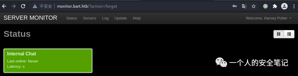 $con = @mysqli_connect('localhost', 'harvey', '!IC4nB3Th3B3st?', 'internal_chat');随后使用该凭证进行命令行下的 Mysql 查询,能在 user 表中得到多个用户hash,但都解不了明文。 在 \monitor\config.php 文件中同样找到一组新的凭证。