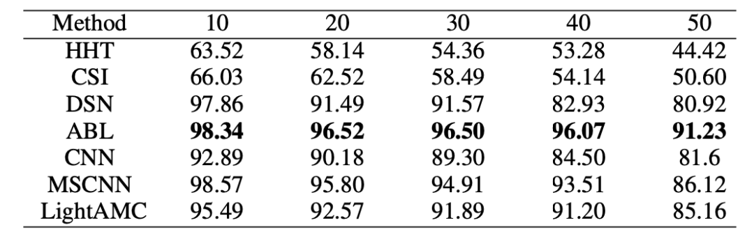 表1 ABL和对比算法在ADS-B数据集的识别率(%)
