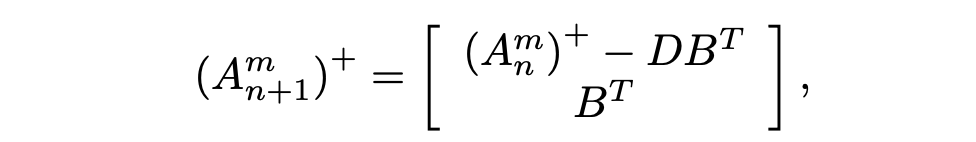所以增加特征节点后与对应的特征节点,其整体表征形式更新。更新后的伪逆可以计算为:
