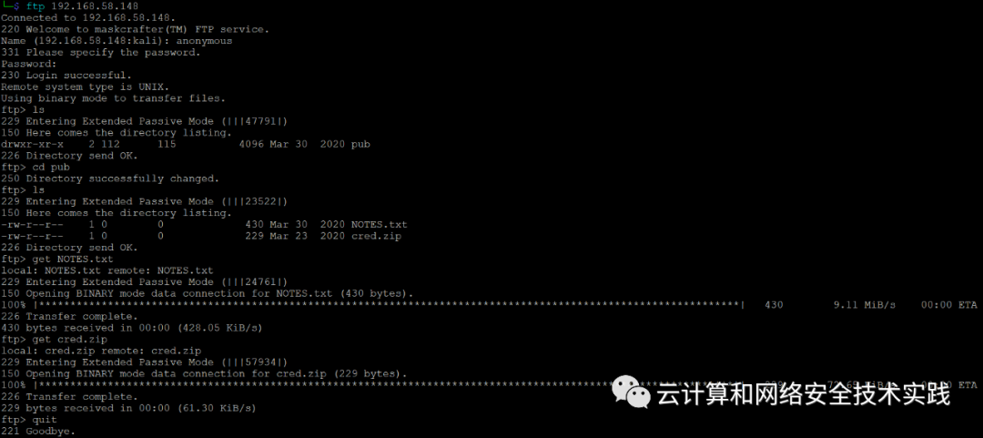 有ftp服务,尝试匿名登录,成功了,下载了两个文件,