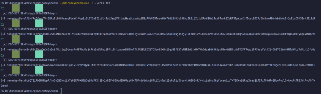一款批量ShiroKey检测爆破工具。单个目标爆破时间短,多目标并发检测平均速度更快,检测准确率高,内置大量已公开KEY且可自行拓展。1、在项目文件夹使用 go build 编译 ShiroKeyCheck.exe -f urls.txt 批量扫描 urls.txt 中的目标-ua User-Agent Mozilla/5.0 (Windows NT 10.0; Win64; x64) AppleWebKit/537.36 (KHTML, like Gecko) Chrome/90.0.4430.212 Safari/537.36-m 发送请求的方式 GET/POST-content 以 POST 方式发送的内容(-m POST时有效)-timeout 每个请求的超时时间 3-interval 请求之间间隔的时间 0-proxy HTTP代理如 http://127.0.0.1:8080-key 指定需要检测的KEY文件-t 并发数量 50-k 标签指定keys文件-rm rememberMe 关键字的别名 rememberMe