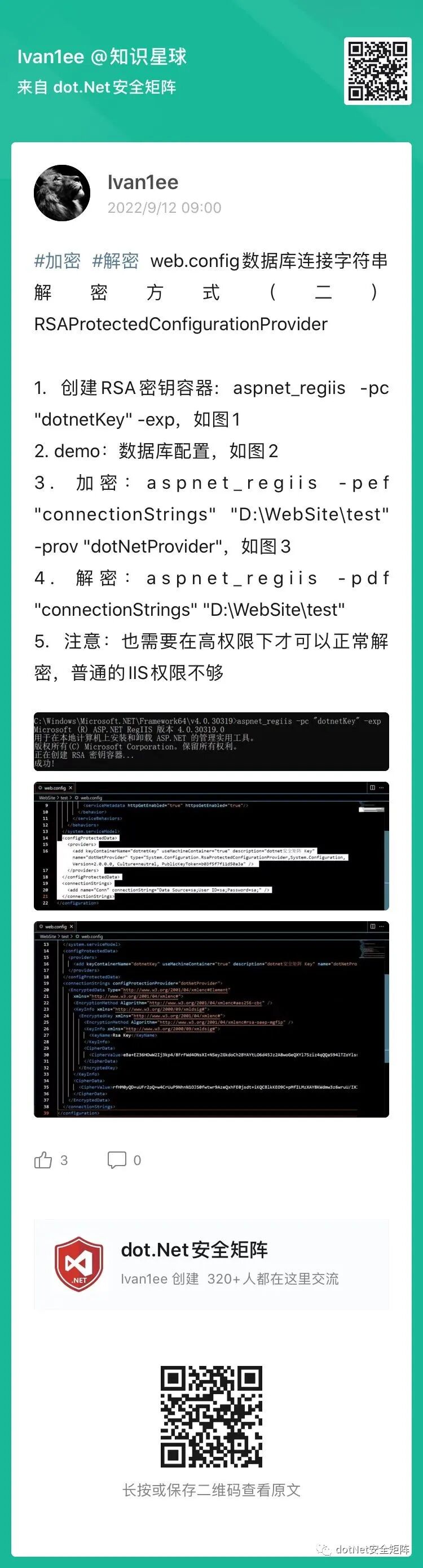 dotNet安全矩阵知识星球 — 聚焦于微软.NET安全技术,关注基于.NET衍生出的各种红蓝攻防对抗技术、分享内容不限于 .NET代码审计、 最新的.NET漏洞分析、反序列化漏洞研究、有趣的.NET安全Trick、.NET开源软件分享、. NET生态等热点话题、还可以获得阿里、蚂蚁、字节等大厂内推的机会.