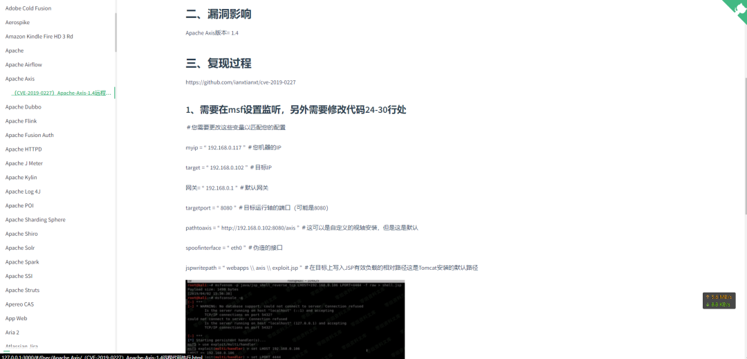 一个知识库,集成了Vulhub、Peiqi、EdgeSecurity、等开源漏洞库,WooOA、CMS、开发框架网络设备、开发语言、操作、Web应用、Web服务器、应用服务器等漏洞。