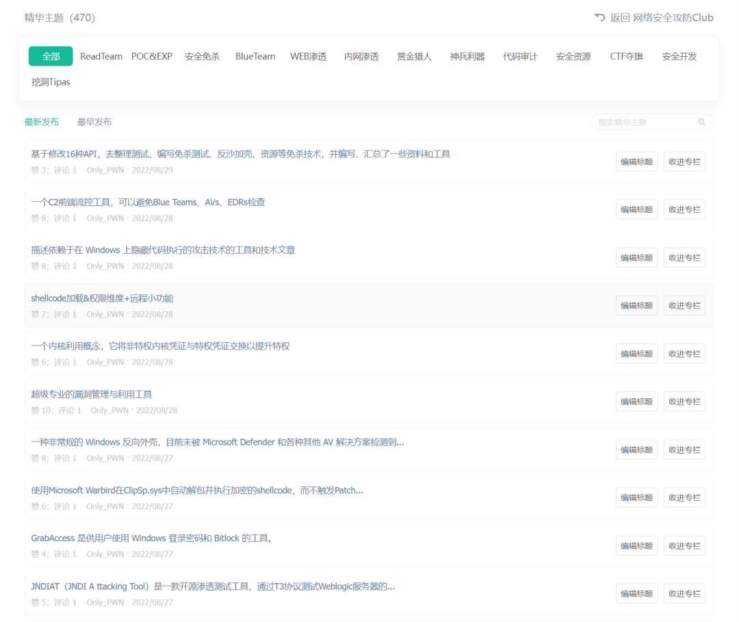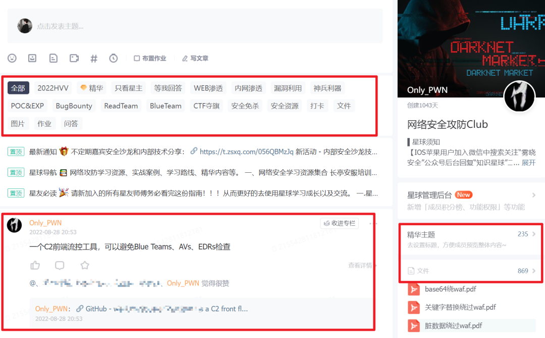 高质量安全攻防星球社区,致力于红蓝安全对抗攻防研究,汇聚了1200+各行业安全攻防技术大咖加入,并且每日分享漏洞情报和交流解答各类技术等问题,社区中发布5400+各类安全资源,其中主题包括红蓝对抗/漏洞利用与挖掘/安全开发教程资源及0day等等,循序渐进的方式引导加深安全攻防技术提高以及岗位内推等等服务。