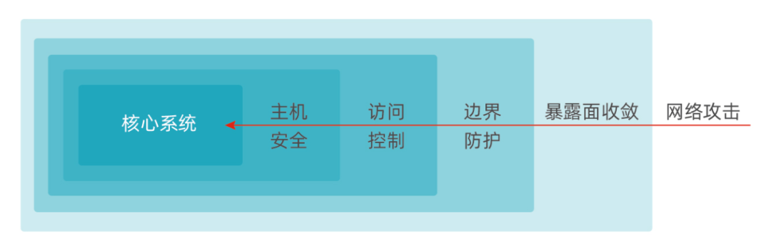 对承载着企业核心资产的服务器来说,一个成熟的网络安全防御体系,从纵深的角度看,其防护工程从外到内可以分为四层:暴露面收敛、边界防护、访问控制、主机安全。当然,除了这些,还有针对社工、钓鱼等攻击的安全意识培训等安全措施。
