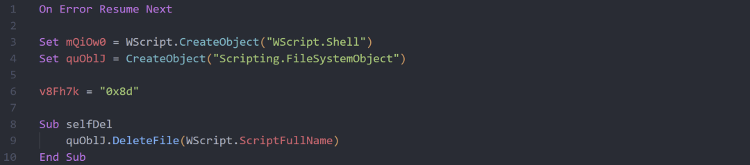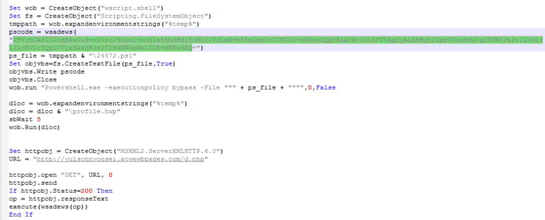 以及hwp后缀的恶意文件,其释放的VBS脚本如下: