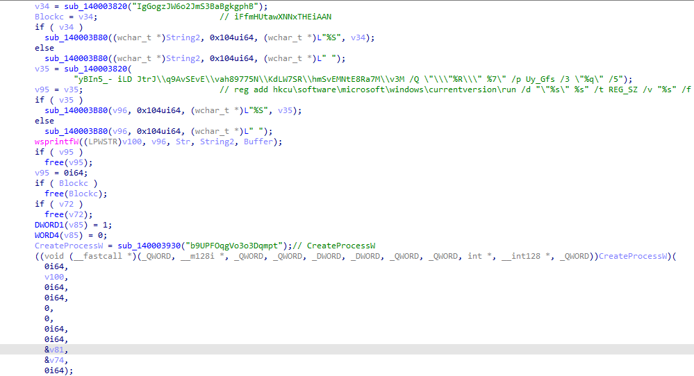 随后在注册表添加持久化,执行副本程序lsass.exe并传入参数iFfmHUtawXNNxTHEiAAN。