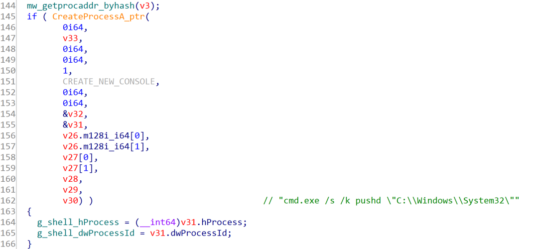 接收到C2服务器的响应后,线程会创建一个CMD shell。