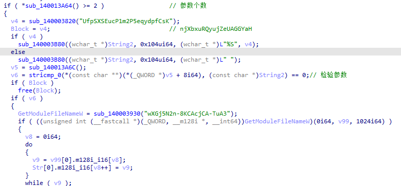 样本启动后会校验参数个数,当未携带参数时直接退出程序,在单独执行该样本时,可有效躲避沙箱的动态行为检测。