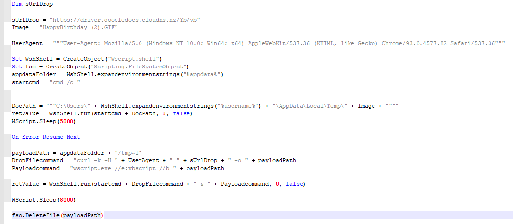 值得注意的是,代码使用如下的硬编码User-Agent发起HTTP请求,其中用错误的拼写”Chremo””Edgo”表示”Chrome”和”Edge”。国外友商在近期的一篇报告中提到Kimsuky通过这种方式验证请求是否来自受害者机器【4】。