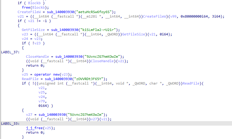 样本实际为PIF可执行程序,使用PDF图标进行伪装,其功能为Dropper程序,释放诱饵和加载后续载荷执行。其样本内的字符串均使用自定义的算法进行加密,执行时通过解密字符串从而获取API函数地址,其解密函数如下。