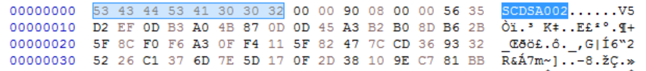 释放的诱饵文档不能直接打开,并且头部带有”SCDSA002”字样,很可能经过韩国的DRM产品加密,也意味着这可能是之前被窃取的文档。