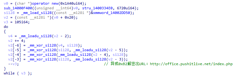 随后样本使用0xB2作为密钥,异或解密出相关URL信息。