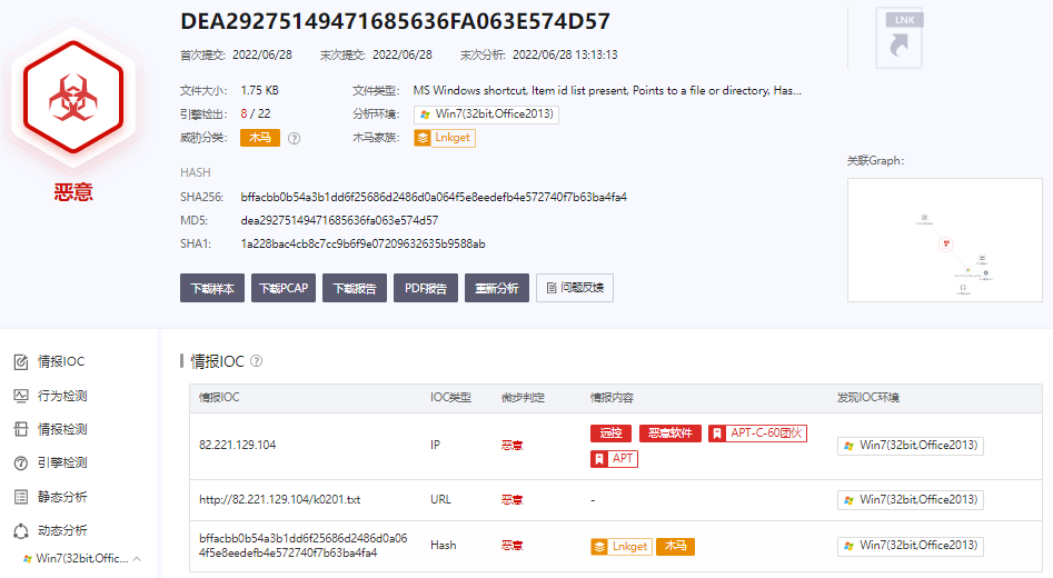 以“Online questionnaire-Exploring ways to cooperate with North Korea.docx.lnk”为例展开分析,样本信息如下: