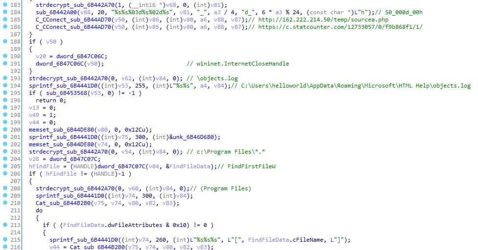 从下载文件检索代码来看,存在的默认下载文件扩展名包括“.dib”、“.bmp”。当前C&C仅可下载bmp文件。