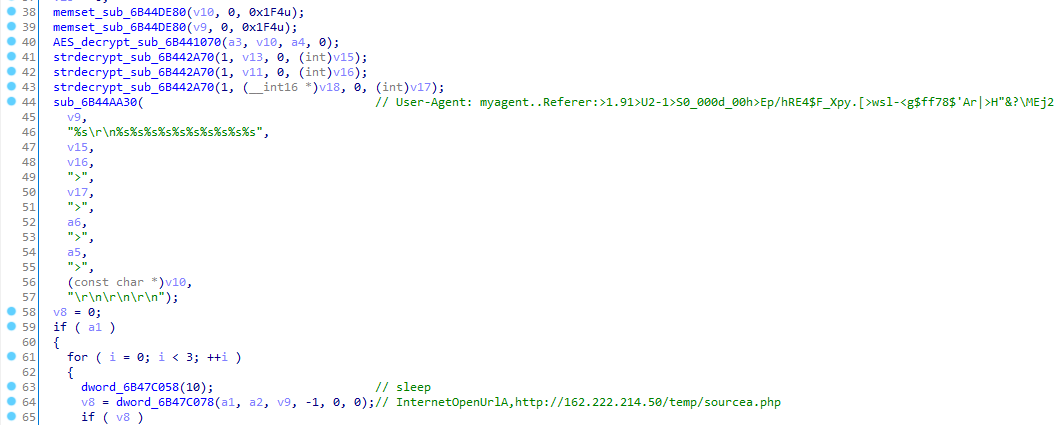 木马通信中还存在"b001=*&b002=*&b003=*&b004=*"、"c001=*&c002=*&c003=*&c004=*"类型的post数据包,其分别表示解析C&C下发URL进行下载动作、文件上传相关。