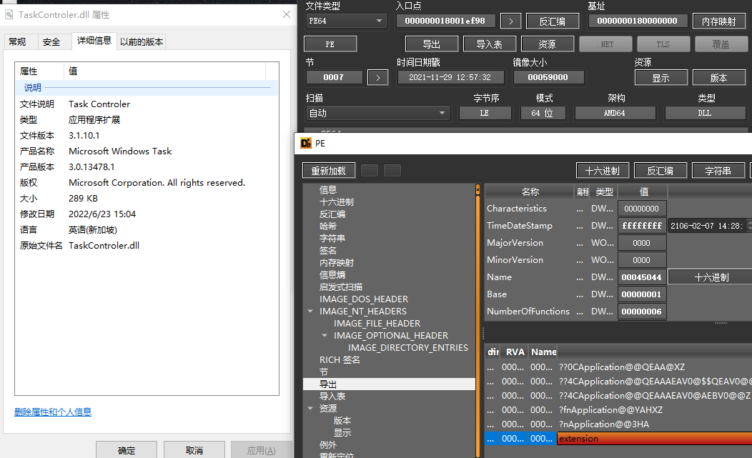 以“TaskControler.dll”为例展开分析,样本信息如下: