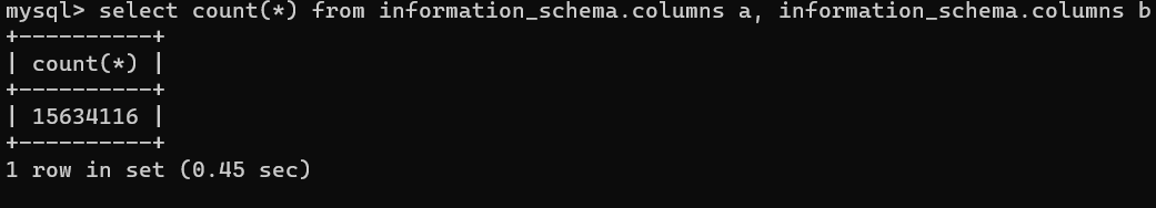 count(*) 后面所有表中的列笛卡尔积数,数量越多耗时就越多,就会有延迟: