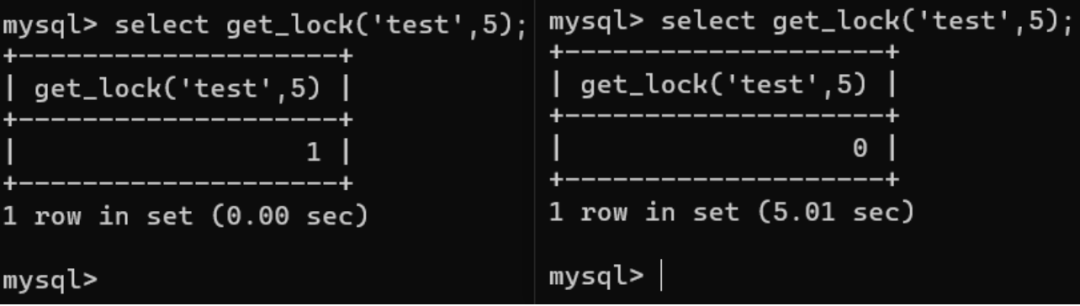 GET_LOCK(key,timeout) 需要两个连接会话