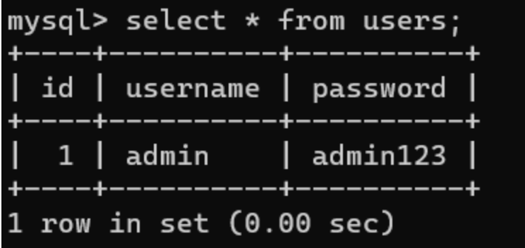 select username, password from users where username='$username' and password='$password';