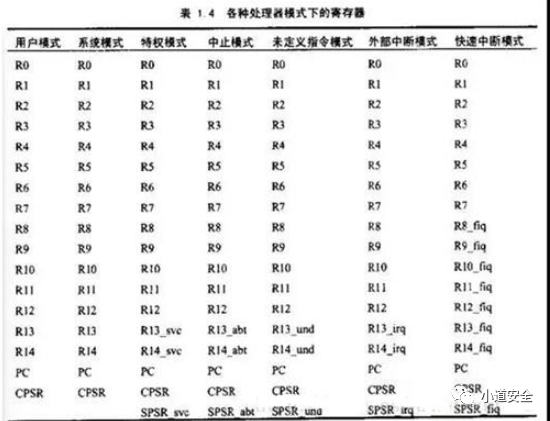 其中未分组寄存器R0-R7,分组寄存器R8-R14;