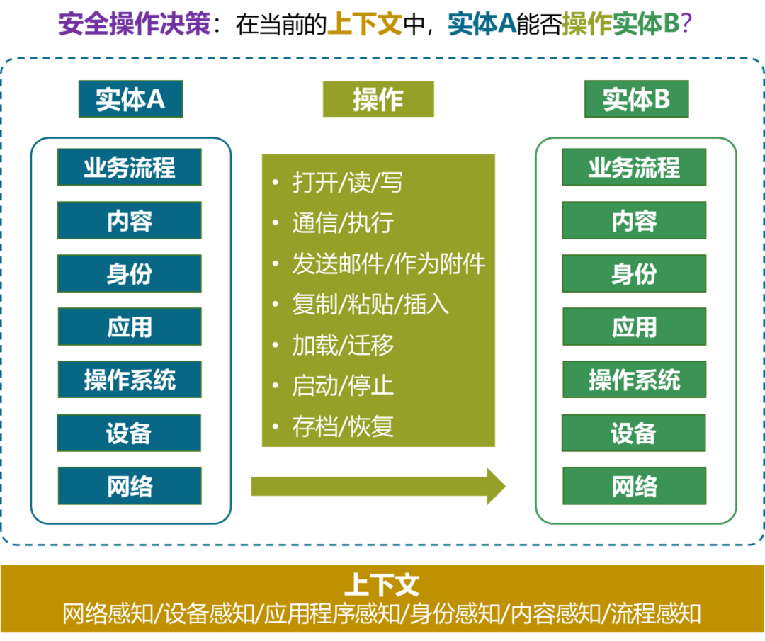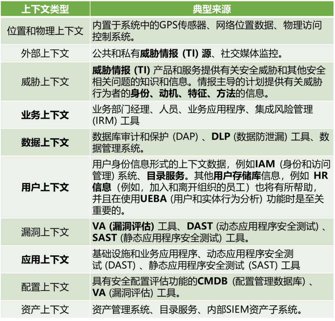 上下文(Context)是某事物存在或发生的环境/条件/情况/背景,可以帮助解释或理解该事物。这里的“某事物”也可以理解为上一节中的内容(Content)。上下文感知安全,是在做出决策时使用补充性上下文信息,来改进安全决策。为了更快、更准确地评估某个给定的操作请求应该被允许还是拒绝,需要在做出安全决策时加入更多实时上下文信息。2)上下文感知的示例