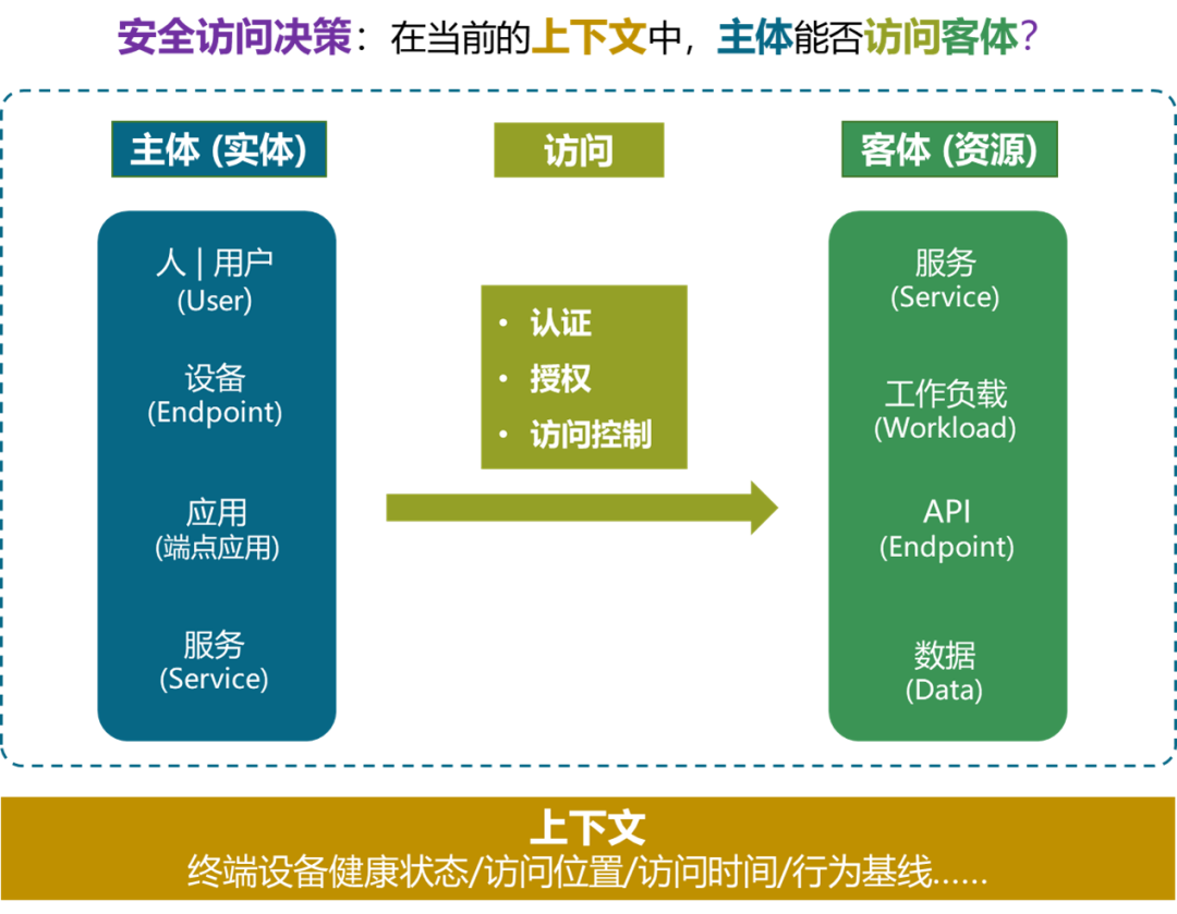 零信任访问的目的是:在不可信环境中,实现实体对资源的安全访问。它本质上是要做出一个安全访问决策:在当前的上下文中,主体能否访问客体?2)零信任操作模型