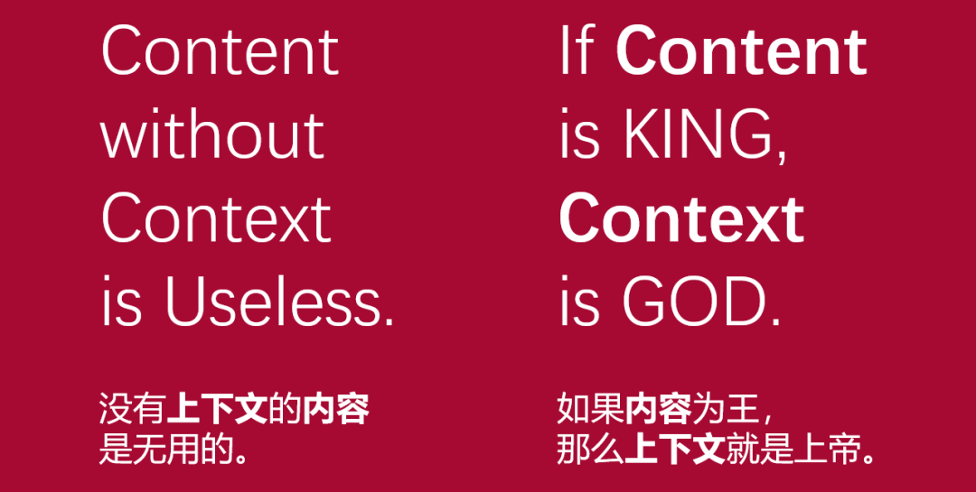 开门见山:Context(上下文)和 Content(内容)Context(上下文)和 Content(内容)是一个有趣的话题。不妨看看几个有趣的对比:图1-Context(上下文)和 Content(内容)