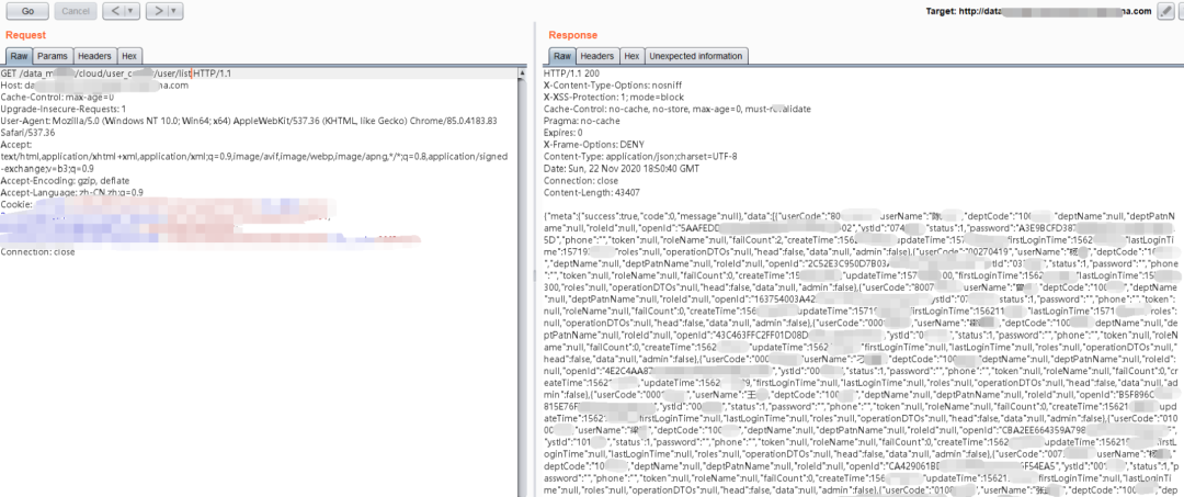 第一个漏洞:未授权调用系统接口查询全部用户数据。