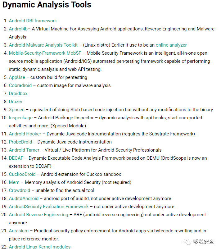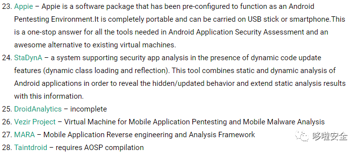 Android安全测试更多地被安全行业用来测试Android应用程序中的漏洞。下面将列举全面的Android渗透测试工具和资源列表,其涵盖了在Android移动设备中执行渗透测试各方面操作。
