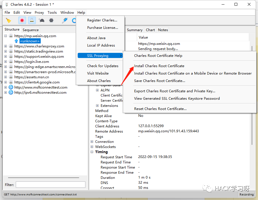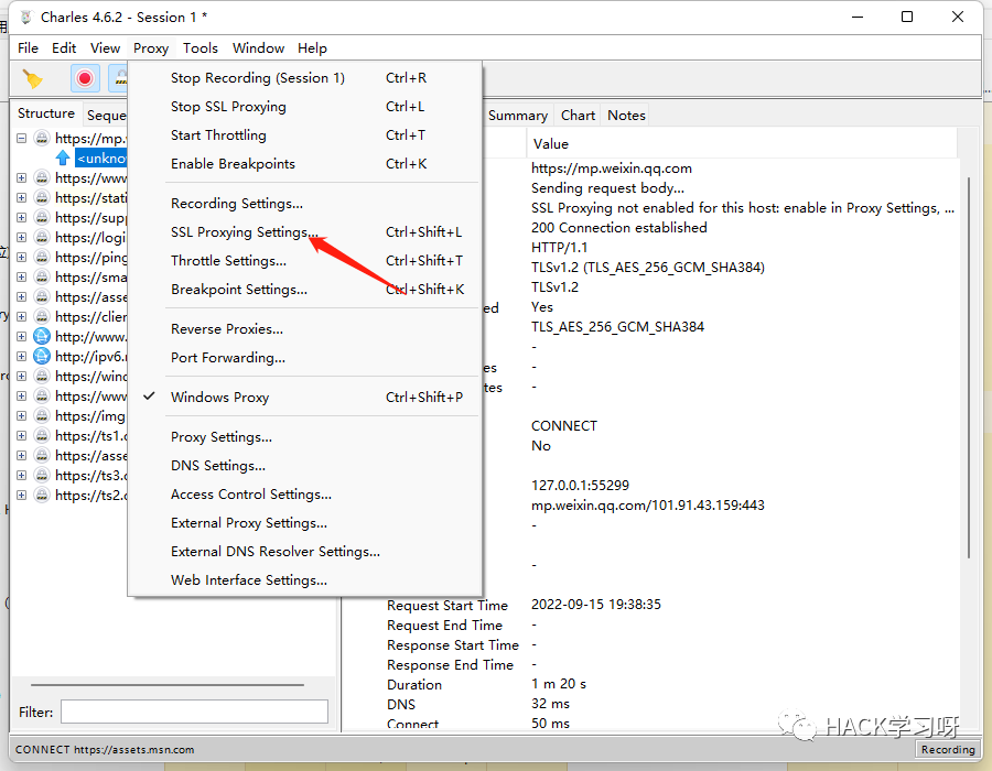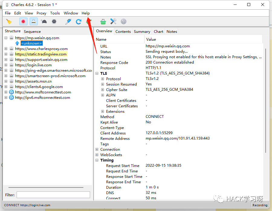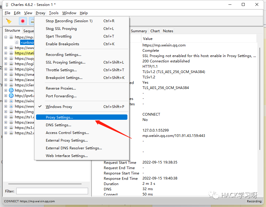 查看监听的端口,注意不要和其他软件和Charles端口相同了哈