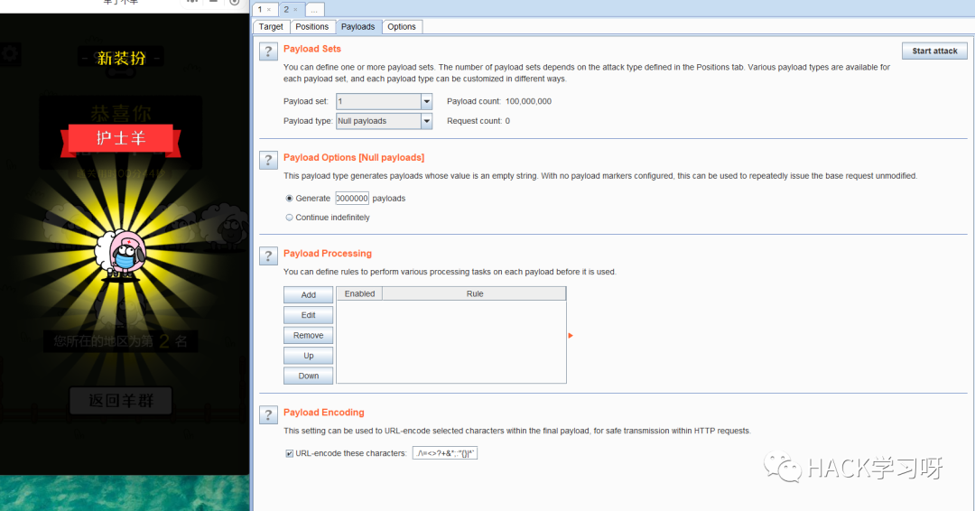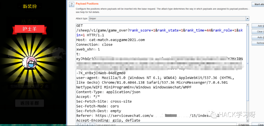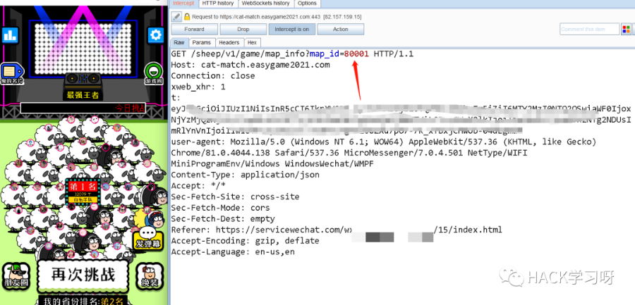 然后打开Burp,包要一个个放,不然就抓不到修改关卡的包
