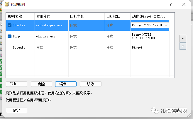 电脑端微信小程序进程---->通过Proxifier---->走到Charles---->通过Proxifier---->走到Burpsuite